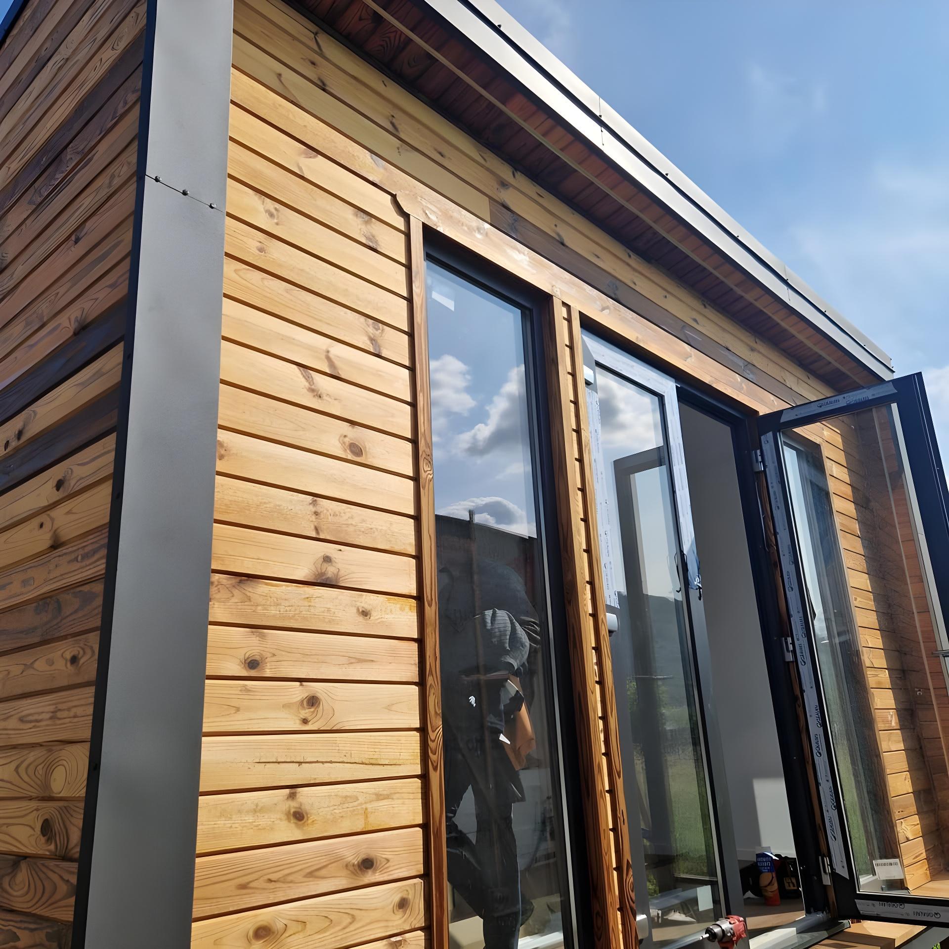 Dimensiuni Suprafață: 16,60 m² Lungime: 5.20 m Lățime: 3.20 m Înălțime: 3.20 m Structura perete Lambriu interior pin nordic Membrană anticondens Structură lemn Izolație vată bazaltică Membrană exterior Dublu sistem de șipci (vertical + orizontal) Tablă click exterior Dotări principale ● Structură lemn masiv ● Izolație vată bazaltică ● Lambriu pin nordic interior ● Baie complet echipată ● Încălzire în pardoseală ● Instalație electrică completă